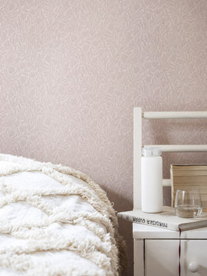 Colour: Warm, off-white background with soft, light-grey flowers and stems.